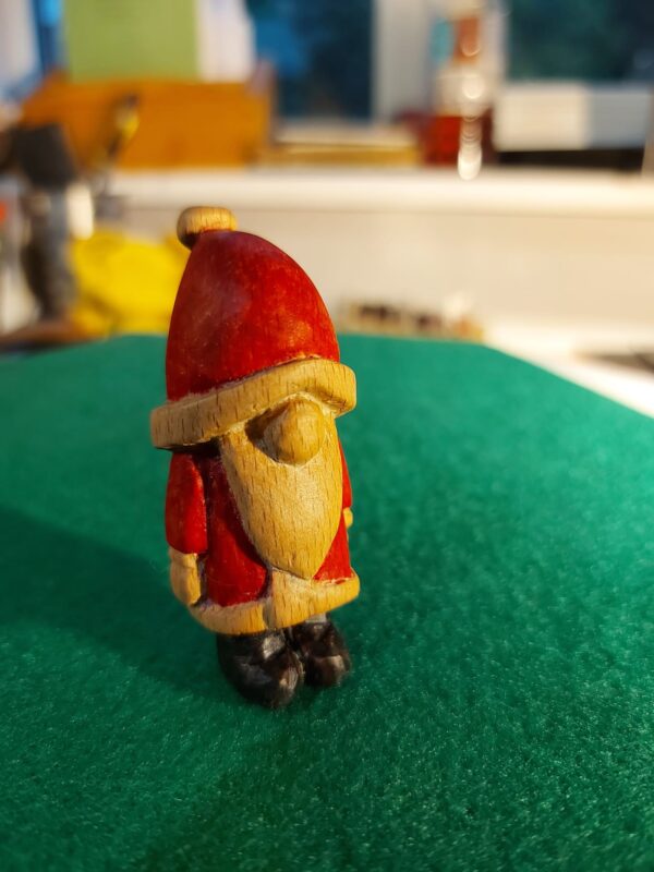 Beautifully handcrafted in my workshop in Hampshire, this wooden Father Christmas is the perfect addition to your home this Christmas. Each Santa is made to order making each one wonderfully unique. His coat is handpainted and the boots have been turned black by burning the wood.